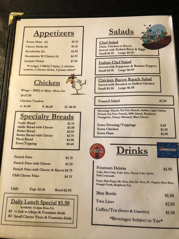 The menu features an enticing array of appetizers like delectable Potato Skins and crispy Cheesesticks served with rich marinara. Don't miss their generous pizzas, which are crafted with fresh ingredients, ensuring a delicious experience every time. Dive into their Italian salads for a refreshing side, or treat the kids to carefully made grilled cheese sandwiches and chicken tenders.